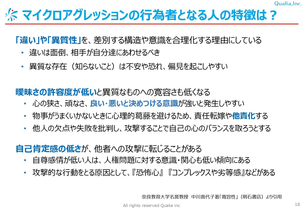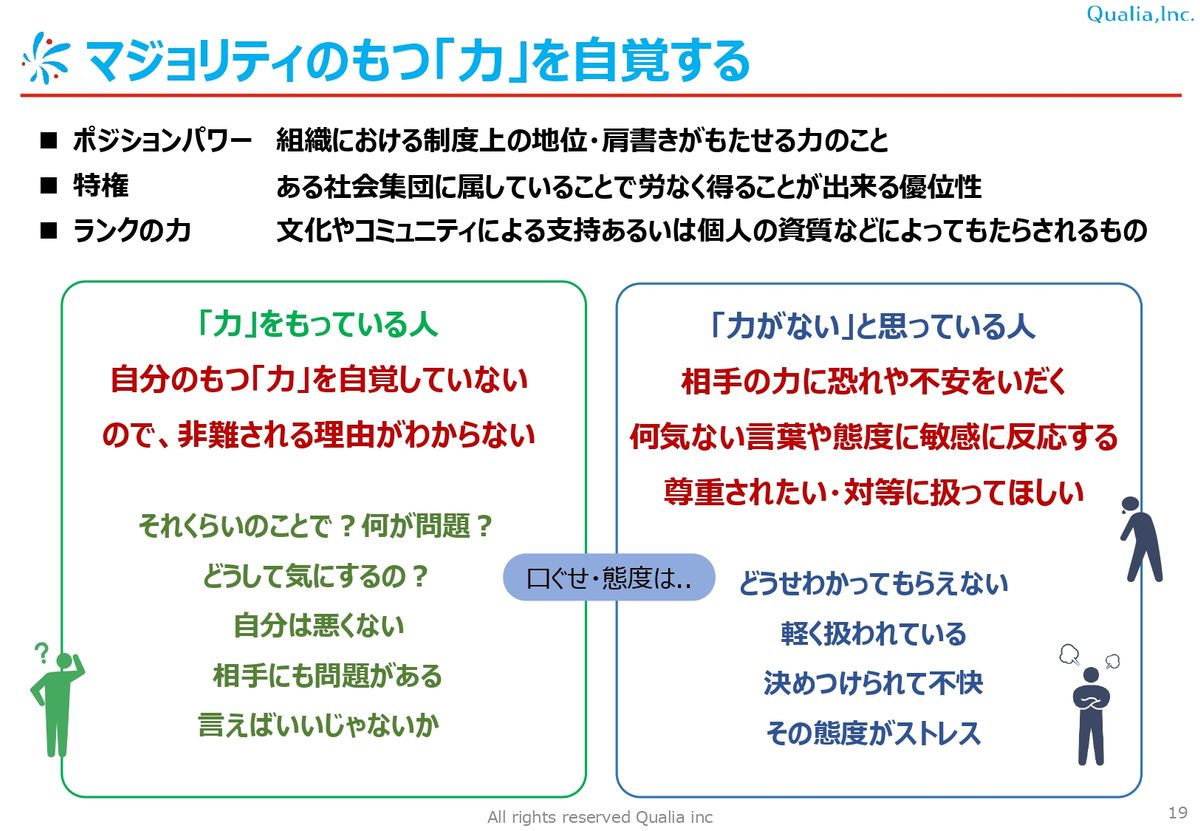 また、役員や上の人たちがこういったマイクロアグレッションに無自覚であると、ちょっとした一言、対応が大きく信用を損ねたり、企業価値の毀損にまでつながってしまう危険性も含んでいるわけです。決して放置していいものではないということをご理解いただけたかなと思います。