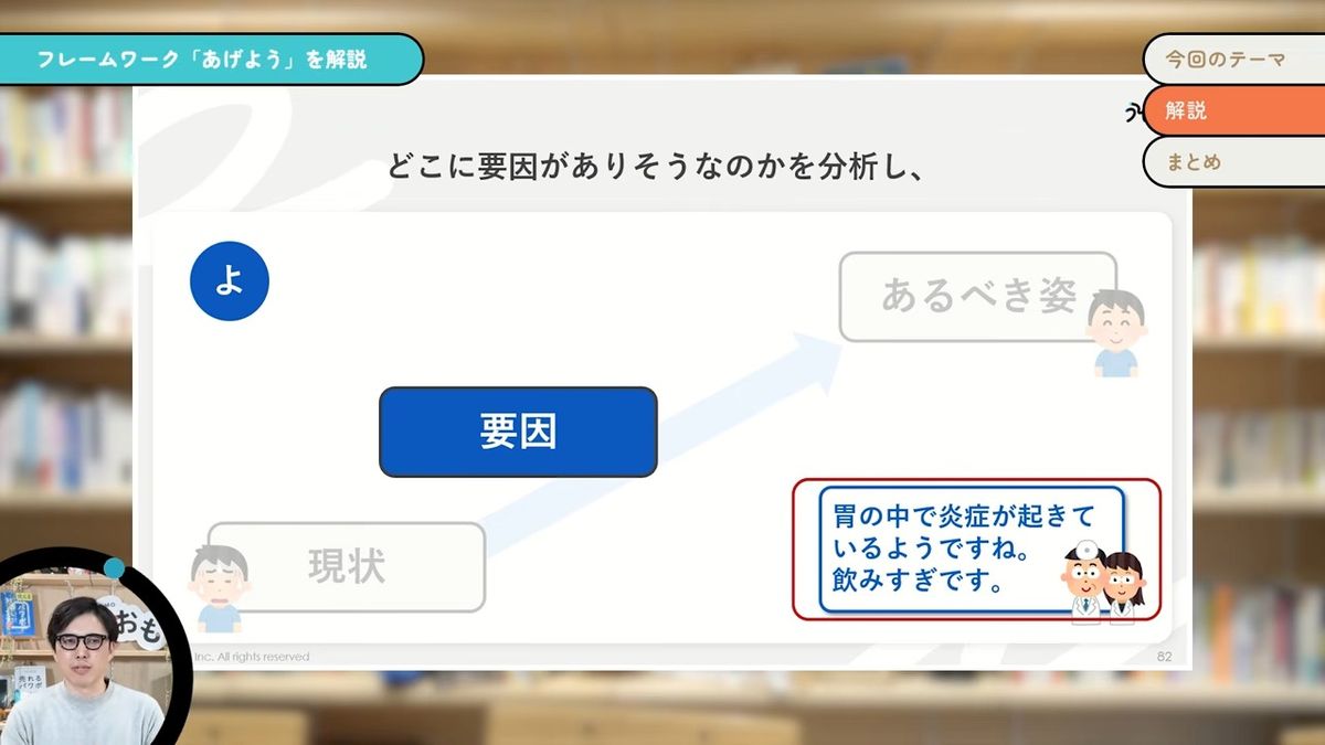 で、「どこに要因がありそうなのか」を分析するわけですね。「じゃあちょっと診てみましょうか。あ、炎症が起きていますね。これはたぶん飲み過ぎじゃないですか?」と要因を特定する。