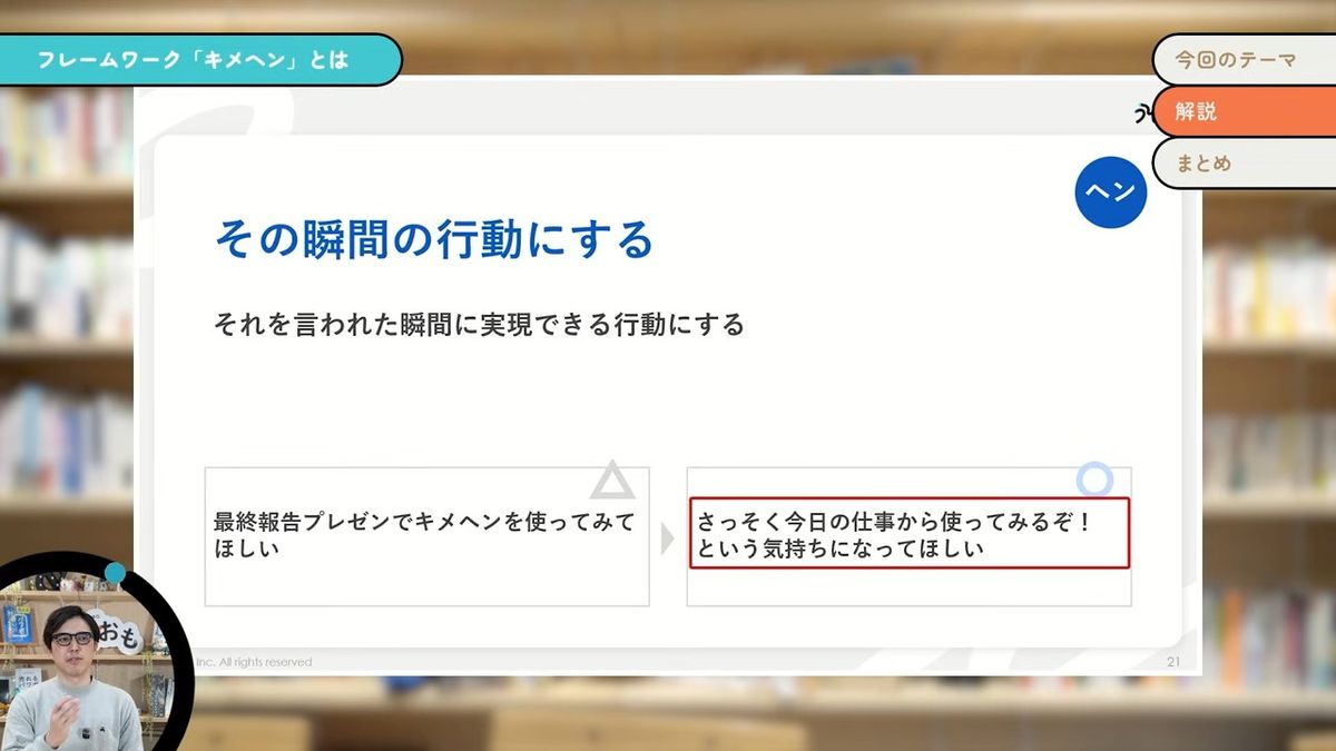 ぜひみなさんに「キメヘン」をボンボコ書いていただきたいんですけども、書き方にけっこうコツがあるんですね。書けばいいっていうものじゃないです。けっこう質が変わってきます。ルールを守ると精度が高まるので、いくつかポイントをお話しします。