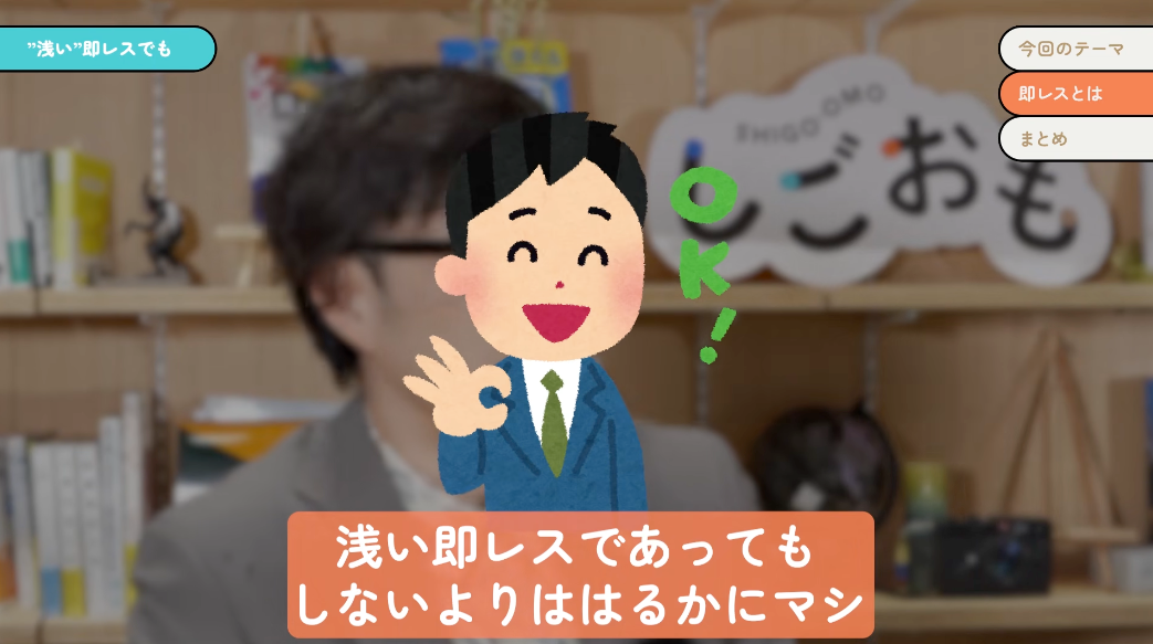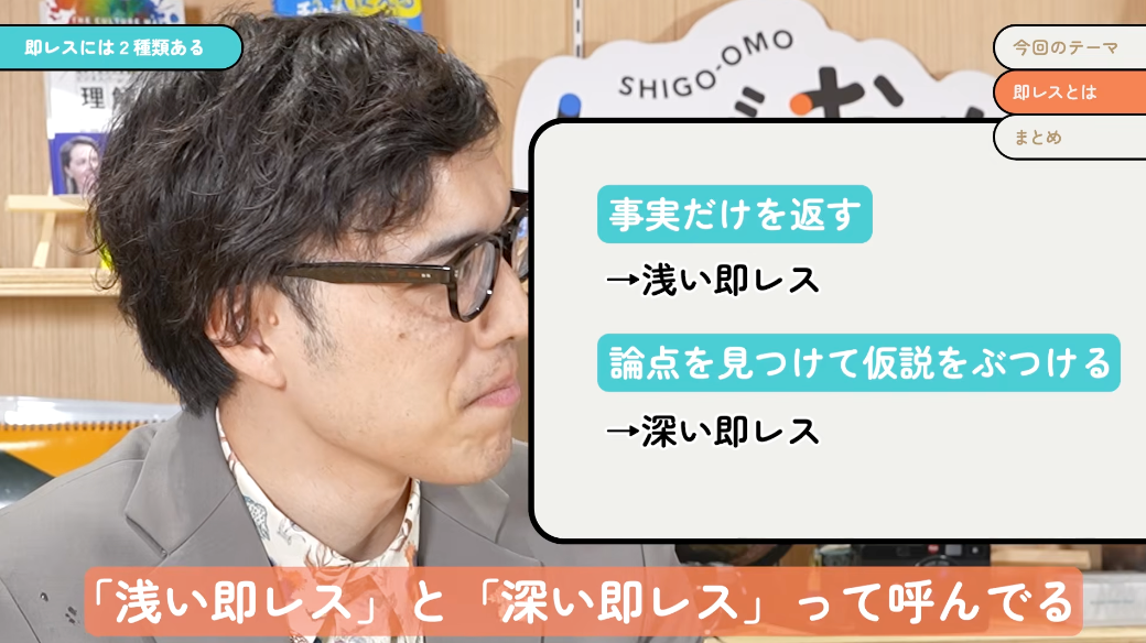 これ、僕は「浅い即レス」と「深い即レス」って呼んでいるんですね。で、深い即レスってムズいのよ。