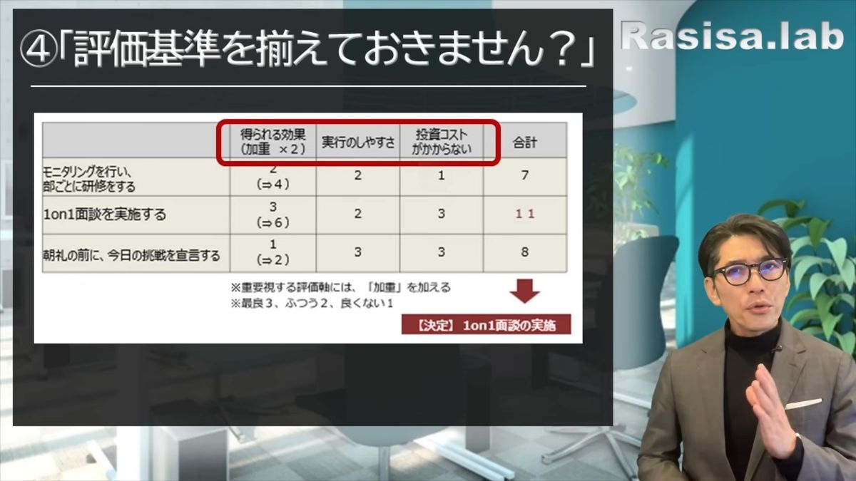 「評価基準を揃えておきませんか?」でロジックを通す