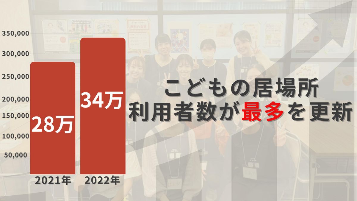 一方、さまざまな課題が見える化されたことにより、子ども支援領域にアプローチする人は非常に増えています。実際に子ども食堂の充足率は全国トップ。居場所の利用者数も年々最多を更新しています。