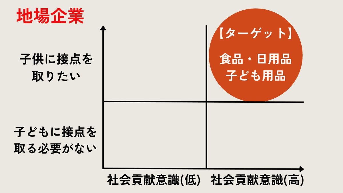 私たちは、社会貢献の意識が高く、子どもとの接点を作りたい、食品や日用品、子ども用品等を扱っている企業さまをターゲットに、私たちのスキームを訴求していきます。