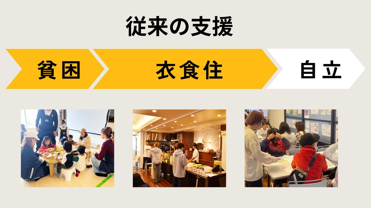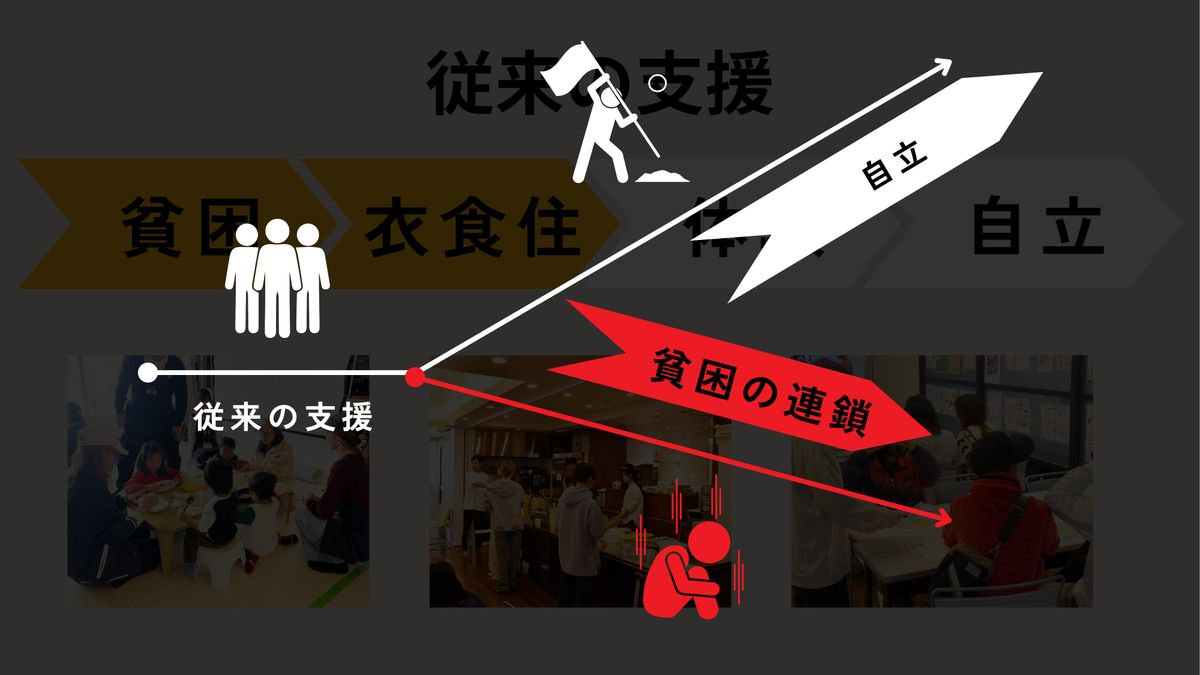 それは一時的なアプローチでしかないということです。従来の支援では社会的自立までのハードルが非常に高く、貧困の連鎖を抜本的に解決する方法にはならないことに気づきました。金城さんは頭を悩ませました。