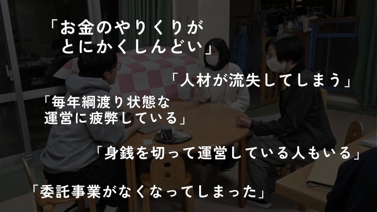 「お金のやりくりがとにかくしんどい」「身銭を切って運営している人もいる」。さまざまな課題を聞く中で、私はNPOの資金不足に目をつけました。資金がないがゆえに人材を獲得できず、発展的な活動ができない。よって資金を作ることができない。このようなループに陥っています。