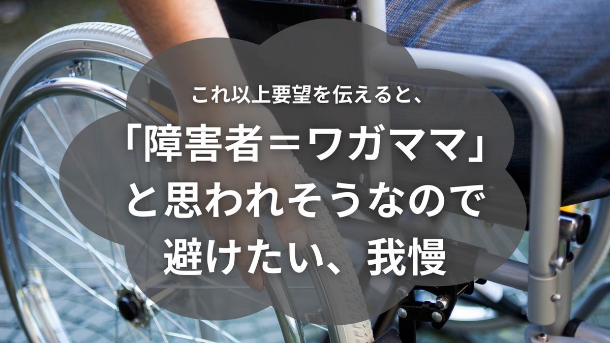 これ以上要望を伝えると、「障害者イコールわがまま」とくくられてしまいそうなので、避けたい、我慢する、そして同じ職場で働き続けることを諦めてしまう。すごく共感できます。