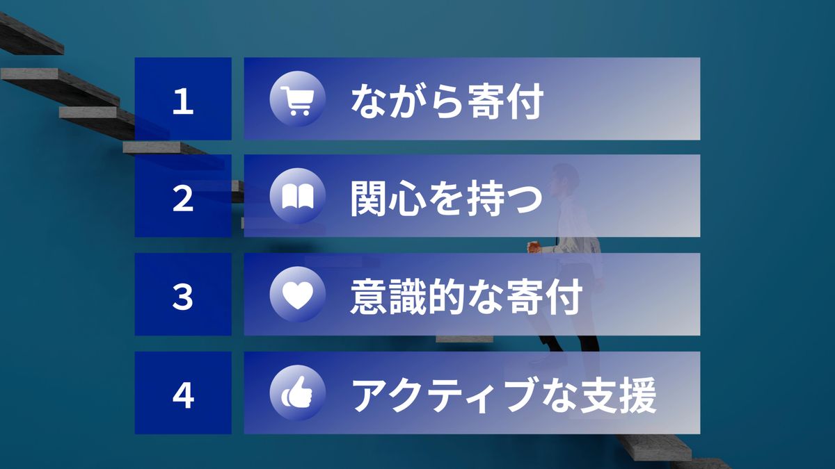 そして、そこで集まった膨大な寄付行動データを匿名化して活用することで、NPOの新規寄付者の開拓や獲得を支援していきます。また「ながら寄付」を入り口に寄付の金額や頻度をステップアップしていける、寄付のステップアップモデルも作っています。