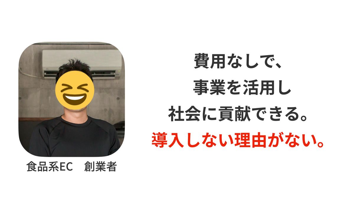 ECサイトさんからの声です。「費用なしで寄付を活用し社会に貢献できる、導入しない理由がない」「寄付を通じて自社の理念を顧客に伝えることができる。ぜひ導入したい」。こうした声をいただいています。