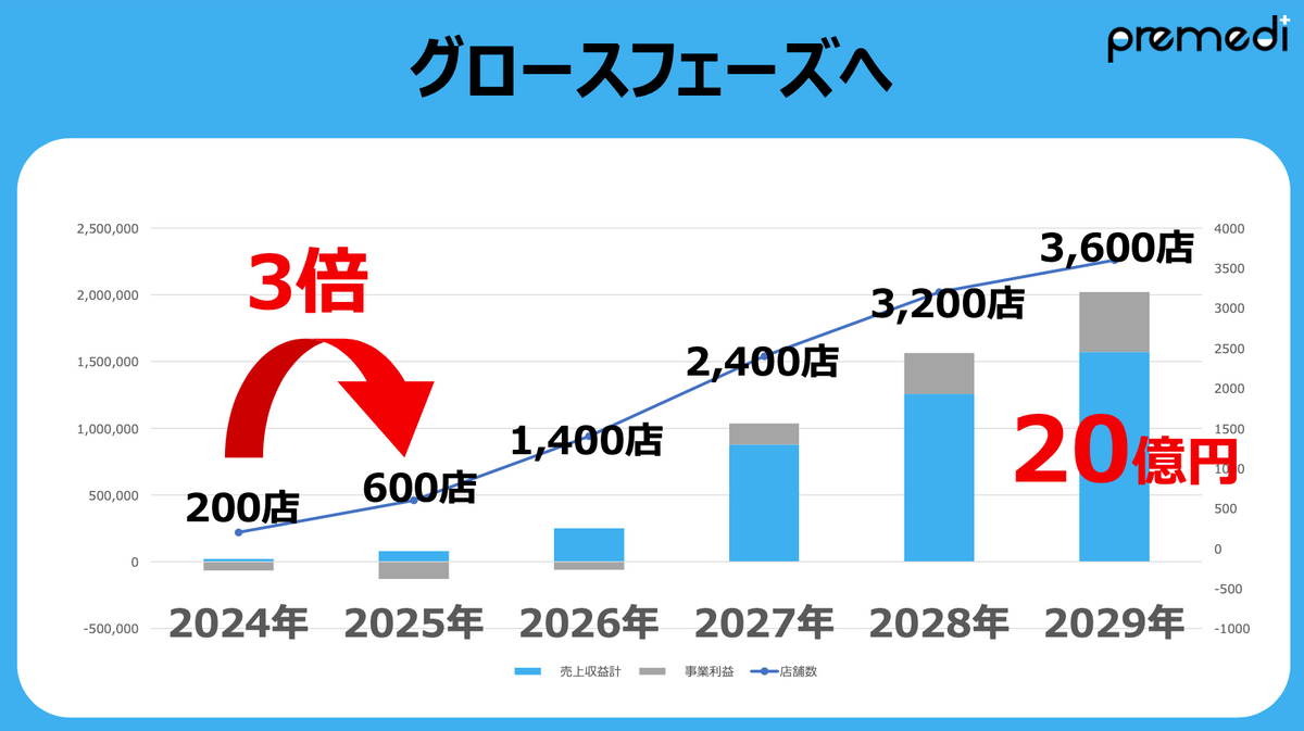 2025年から問い合わせが止まらない状況になっていまして、ありがたいことに毎月30件のお客さまが増えています。毎月ですよ。毎月10パーセントというすばらしい成長率でpremediは広がっております。