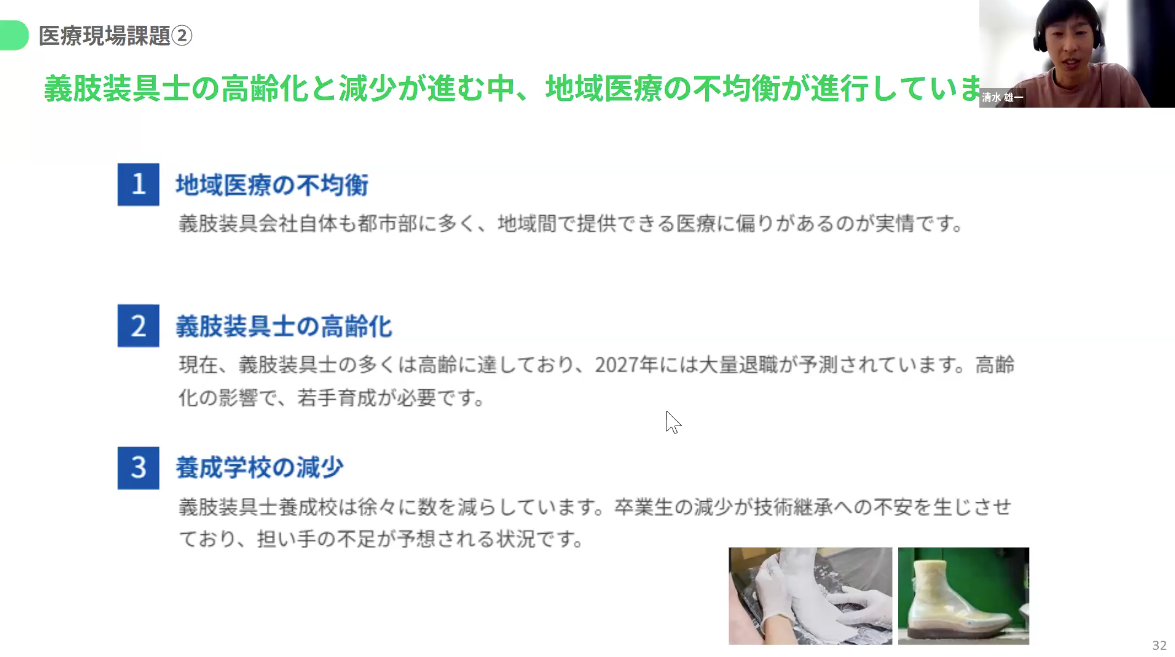 さらに、義肢装具士の方々の高齢化。特に多く資格を認定された世代が2年後に定年を迎えられて大量に離職される、みたいな背景もございます。