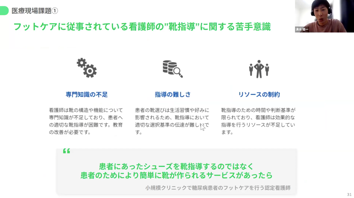 なので「患者さんに合ったシューズを看護師の方々が選んであげるんじゃなくて、適切なシューズを作れるようなサービスがあったらベストなのに」と言っていただいています。