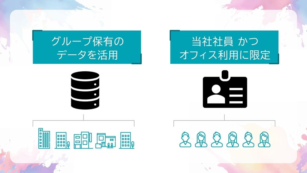 当社は守りも重視していまして、森・濱田松本法律事務所に顧問弁護士に入ってもらい、データはグループ保有のものを活用。AI利用者も限定して運用しています。