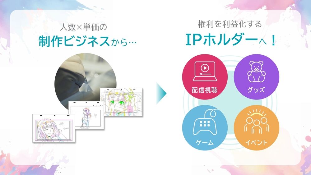 とはいえ、アニメ制作は「人数×単価」の制作ビジネス。アップサイドを狙っていくためには、IPホルダー側へ回っていく必要があります。我々は制作受託をきっかけに、有名タイトルの製作委員会への出資参画が決定しました。出資のみならず、商品化権・イベント化権も獲得見込みです。