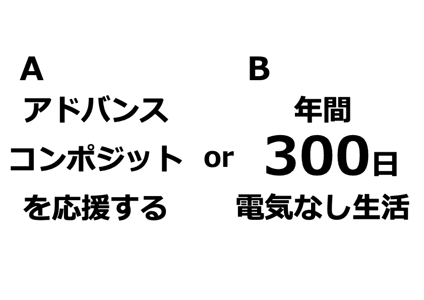 アドバンスコンポジット社を応援して社会貢献 or 電気なし生活で社会貢献
