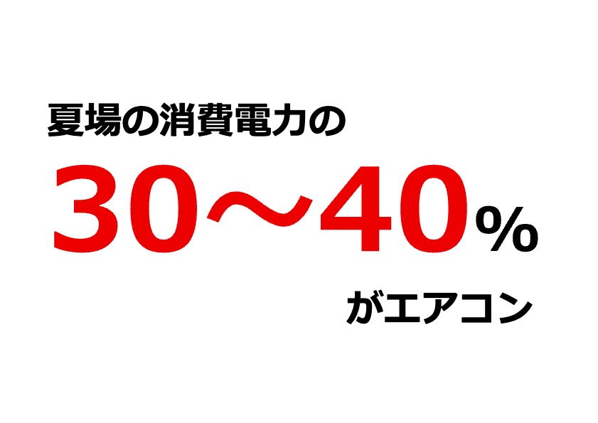 あれ、日本の夏の消費電力の30〜40パーセントがエアコンだからです。オフィスだと50パーセントいきます。エアコンの影響ってけっこうでかいんですよ。電気代もかかる。