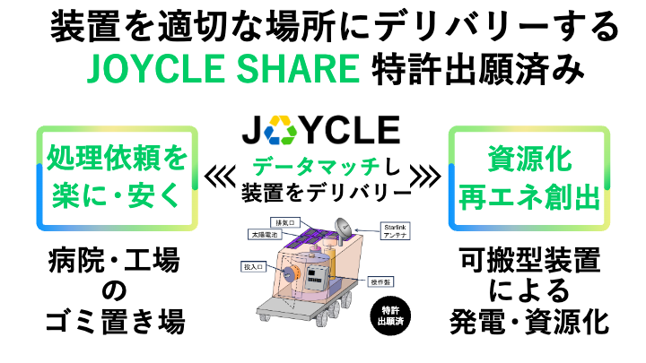 また、中の熱とガスを活用して、発電・給湯・融雪などできるハードの知財、あるいは自動投入ができるUXを高めるハードの知財も取り集めているのがJOYCLEの特徴です。