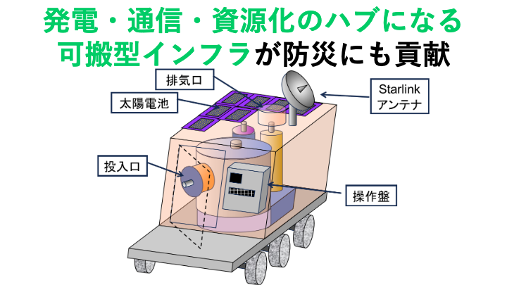 また年内には、「Starlink(衛星インターネットサービス)」とJOYCLE BOXが一体型になったシャーシのサービスも提供開始予定です。運べない災害廃棄物をオンサイトで処理できる、防災にも役立つインフラサービスです。