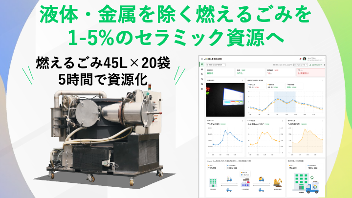 また、灯油・ガスに一切依存せず、電熱でごみを資源化していくので、再生可能エネルギーを使ってカーボンフリーでごみを資源化できる。それがJOYCLE BOXです。