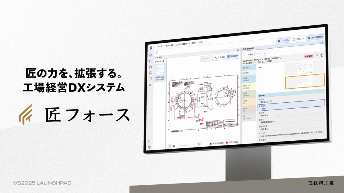 現在取り組んでいる見積領域は、実は工場経営における業務の起点なんです。業務の入り口から一気通貫で図面、工程、技術の情報を蓄積している匠フォースは、いわば匠の技術をデジタル資産化している状態です。