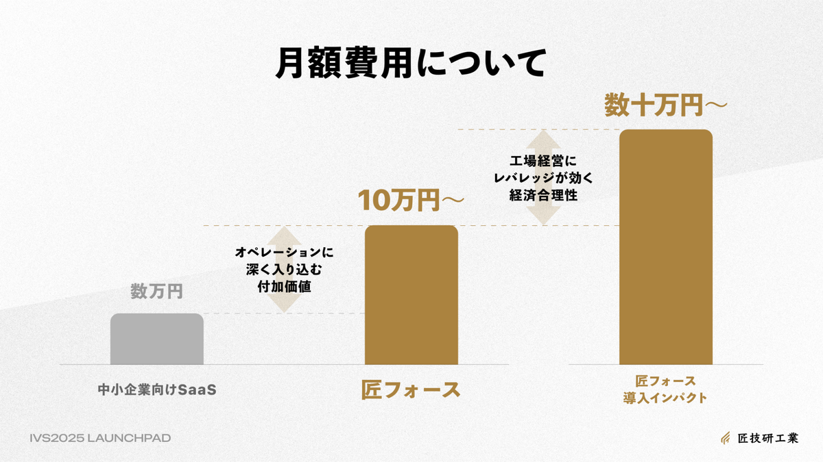 ビジネスモデルをご紹介します。サブスクリプションモデルで月額費用は10万円から。これは中小企業向けSaaSの中ではかなりの高価格帯に入りますが、高い費用対効果を見込むことができる付加価値の高いプロダクトになっています。