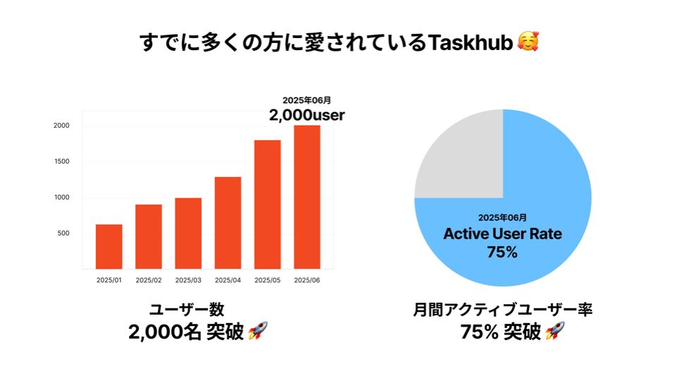 ・すでに2,000人以上のユーザーを獲得し、75%超のアクティブ率を誇る「Taskhub」 は、世界市場への展開を目指しています。