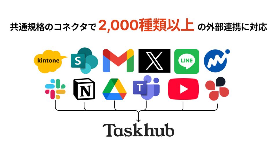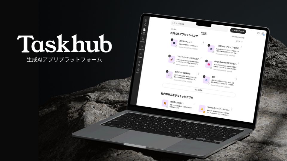 ・生成AIプラットフォーム「Taskhub」は、2,000種類以上のアプリで契約書チェックなどの複雑な業務タスクを自動化します。
