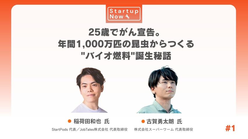 稲荷田和也氏(以下、稲荷田):声で届ける起業家の物語『Startup Now』。MCのおいなりです。本日のゲストは、株式会社スーパーワーム代表取締役 古賀勇太朗さんです。