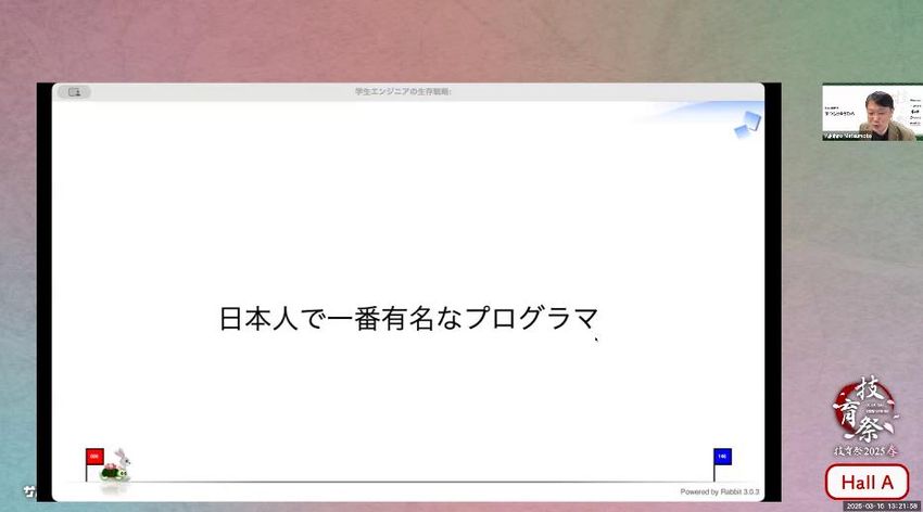Rubyの生みの親・まつもとゆきひろ氏が若手エンジニアに贈る、キャリア構築のヒント。35年にわたるソフトウェア開発者としての経験から、「つよつよエンジニア」と呼ばれる存在になるための本質的な考え方を語ります。技術だけでなく、成功への道筋や自分らしさの活かし方など、プログラマーとして生き抜くための実践的な戦略を、ユーモアを交えながらわかりやすく解説しました。
