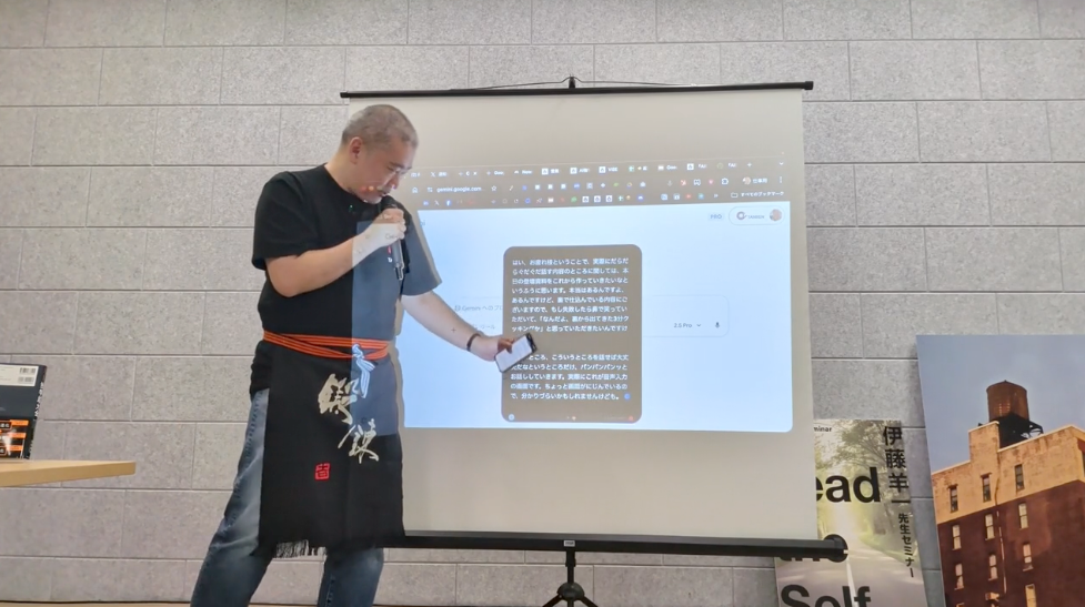 本をひっくり返していただいた(帯の)ところの「最初に具体化なんですよ」っていう話なんですね。具体化とはどういうことか。Geminiでも、OpenAIのChatGPTでもまったく同じです。LLMの性質上と考えていただければ、こういうふうに使えます。
