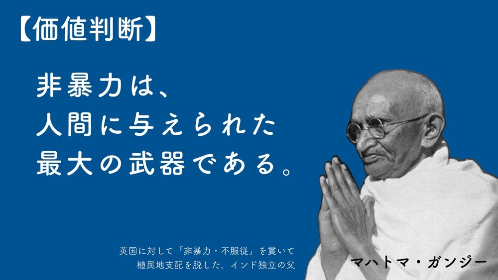 続いて、今度はちょっと毛並みが違うことなんです。価値判断ということがAIはできないですね。例えば僕は(マハトマ・)ガンジーを心から尊敬しているんですけれども、彼は非暴力という、常識では考えられないような、非暴力でありながら不服従という価値観を生み出したんですよね。実際に、その信念がインドを独立に導いた。こういったことは、やはりAIではできないと思います。