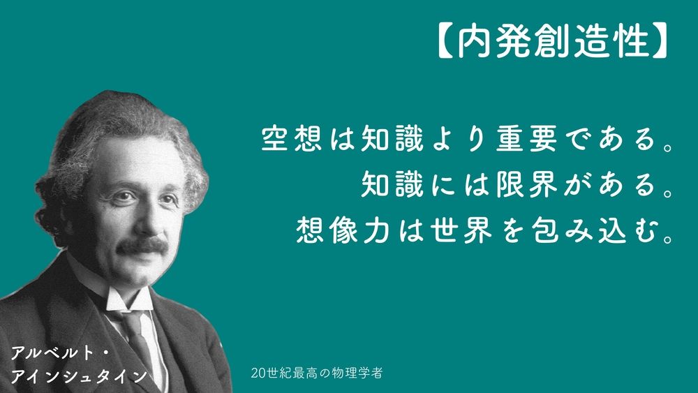 人間の中核能力として、次には内発創造性を提唱します。例えば(アルベルト・)アインシュタインが「空想は知識よりも重要である。知識には限界がある。想像力は世界を包み込む」と言っています。この内発創造性という言葉は造語で、僕が作った言葉です。