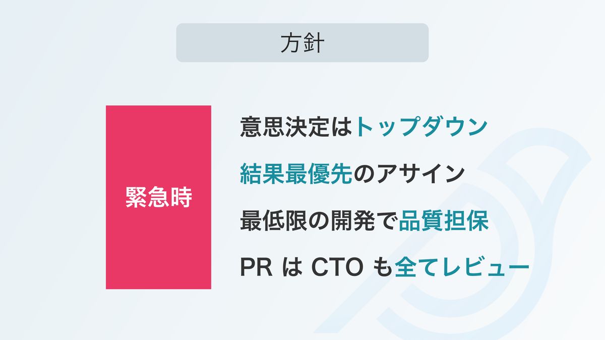 ということで、私は「繁忙期にお客さまにご迷惑をおかけするわけにはいかない」と心に決め、チームを越えて「プロジェクト・テセウス」を発足しました。緊急時だったので意思決定はトップダウン。とにかく結果を出すことを最優先にアサインを行って、新規開発は最低限にして外部品質を担保。